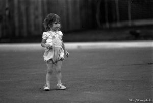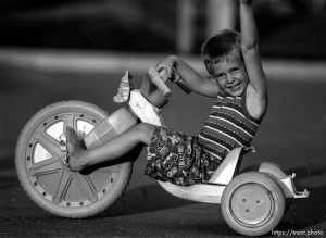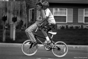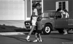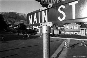 Kids playing in suburban main street with Mt. Timpanogos in background.