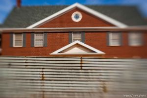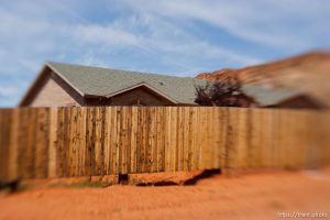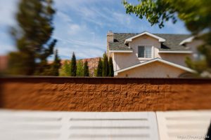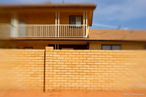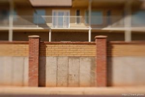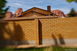 | Polygamy in the American West | FLDS | Lensbaby | Short Creek | Walls | Colorado City | Hildale | Arizona | Utah | United States | Canon EOS-1D Mark II N | 20070425-Creek |
